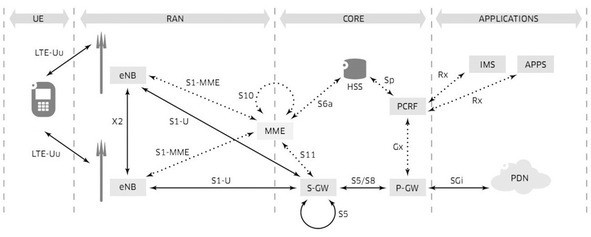 LTE (Long-Term Evolution) – цифровой стандарт сотовой мобильной связи, сменивший UMTS (Universal Mobile Telecommunications System). LTE обладает обратной совместимостью со стандартами мобильной связи второго и третьего поколений. Главной особенностью, присущей исключительно LTE, является использование эволюционной системной архитектуры сети (SAE, System Architecture Evolution), схематичное изображение которой приведено на рисунке 1.1.