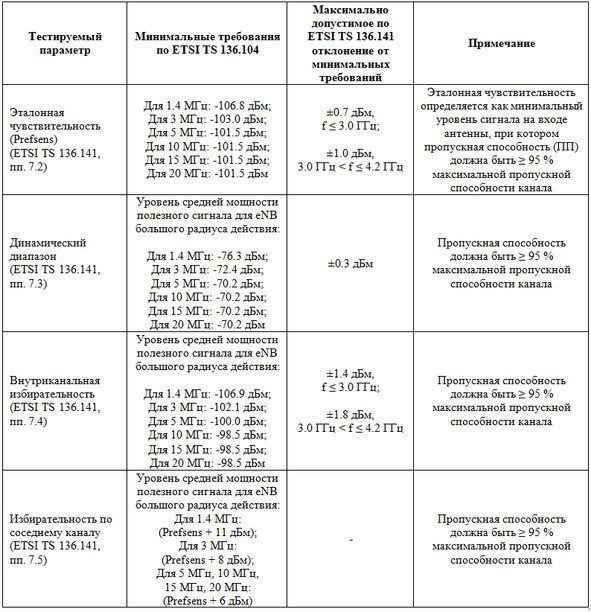 Таблица 1.5. Тестируемые параметры приемников eNB