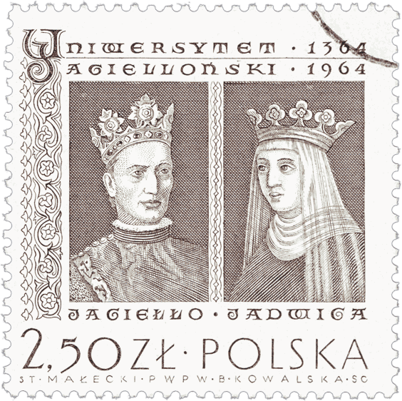 Польская марка с изображением литовского великого князя Владислава II Ягелло и его жены королевы Людвиги. 1964 г.