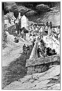 In the town is an old château, the ancient fortress-refuge of the Abbé of Her. It is a great square structure flanked at the angles with little towers, of which two are roofed, one uncovered, and the fourth surmounted by a heliograph for communicating with the Ile de Yeu and the Pointe de Chenoulin. The view from the heights of these château towers is fascinating beyond compare, particularly at sundown on a summer's evening, when the golden rays of the sinking sun burnish the coast of the Vendée and cast lingering shadows from the roof-tops and walls of the town below. To the northwest one sees the Ilot du Pilier, with its lighthouse and its tiny coast-guard fortress; to the north is clearly seen Pornic and the neighbouring coasts of the Pays de Retz and of Bouin with its encircling dikes,—all reminiscent of a little Holland. To the south is the narrow neck of Fromentin, the jagged Marguerites, which lift their fangs wholly above the surface of the sea only at low water, and the towering cliffs of the Ile de Yeu, which rise above the mists.