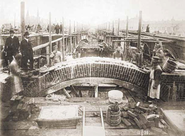 На строительстве Верхних торговых рядов. Фотография начала 1890-х годов