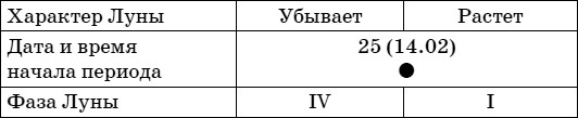 В конце каждого раздела, посвященного определенному месяцу, есть таблица, в которой приведена полная информация о состоянии Луны. Она расположена под таблицей прохождения Луны через знаки зодиака.