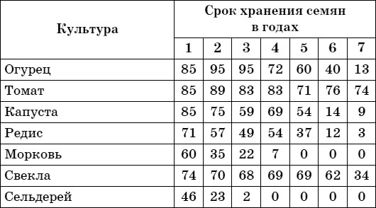 Сверьте по приведенной ниже схеме всхожесть всех семян из своих запасов. Те, что явно устарели, можно смело выбросить, а те, всхожесть которых сомнительна, проверьте.