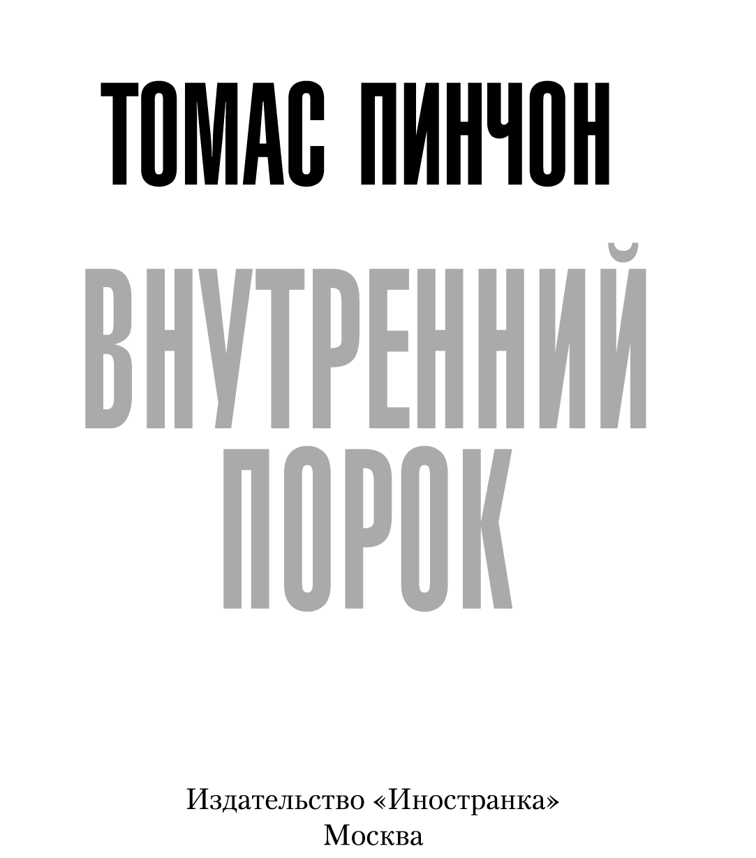 Внутренний порок : роман / Томас Пинчон ; пер. с англ. М. Немцова. — М. : Иностранка, Азбука-Аттикус, 2023. — Большой роман).