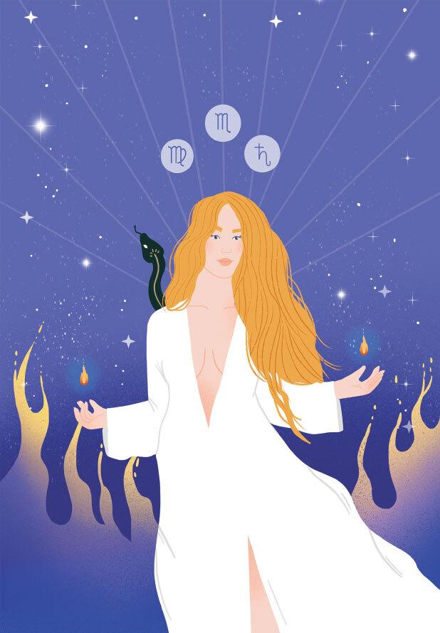 • Это жрица, посвящающая в тайны алхимической, сексуальной и тантрической энергии. Ей известно могущество змеиной силы, и она умеет циркулировать эту энергию внутри себя, соединяясь с силами космической Великой Матери. Она с глубочайшей преданностью погружается в изучение тайн оккультных знаний. Стремится разгадать тайны отношений, часто проявляя чрезмерную вовлеченность в них.