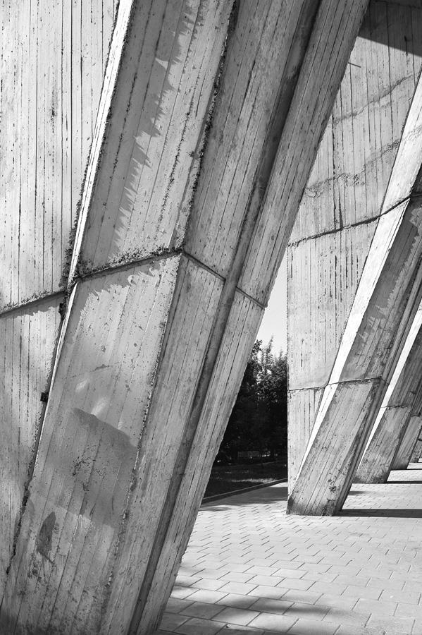 Однако эти же поколения выросли с понятием «качества», которым советская архитектура, увы, похвастаться могла редко. При всей высоте ее идей — качество реализации было низкое. Соответствующей — в ситуации, когда «все вокруг колхозное», — была и эксплуатация. Поэтому сегодня эта архитектура часто осыпается, протекает, гниет. Ее здания уходят со свистом: нет уже гостиниц «Россия», «Интурист», «Минск», павильона в Шереметьево («рюмки»), а те дома, что еще живы, перестраиваются и переоблицовываются. И мы долго сомневались — включать ли, например, в книгу ИНИОН[33]1, который сгорел в январе 2015 года2. С точки зрения добропорядочного путеводителя отправлять к нему туриста — полное безумие, но и закрыть глаза на его руины, смириться с его гибелью — мы тоже не могли. Это продолжающееся разрушение — главная проблема нашей книги. Мы спорили и о том, давать ли современные фотографии зданий в тех случаях, когда от их первоначального облика осталось немного или совсем ничего — как в случае с аптекой в Орехово-Борисово[30]. Уже сама по себе идея снимать объекты в черно-белом варианте — свидетельство поражения, признание того факта, что с ними все плохо. Но «книга должна быть про идею, про их изначальную платоновскую сущность, — твердо сказал фотограф Юрий Пальмин, — а не про то, что с ними случилось, не про керамогранит и рекламу, их накрывшие».