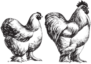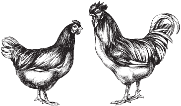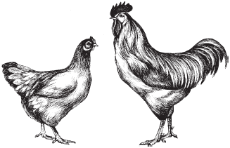 Возраст курицы по внешнему виду не определяем, но у петухов выявлена закономерность величины шпор от возраста – к годичному возрасту длина шпоры достигает 1–1,5 см, ко второму году – 2 см и более, к третьему – 4, пятому-шестому – более 6 см.