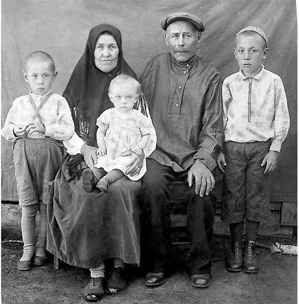 Дедушка и бабушка Пономаревы, их внуки Владимир, Михаил, Люба