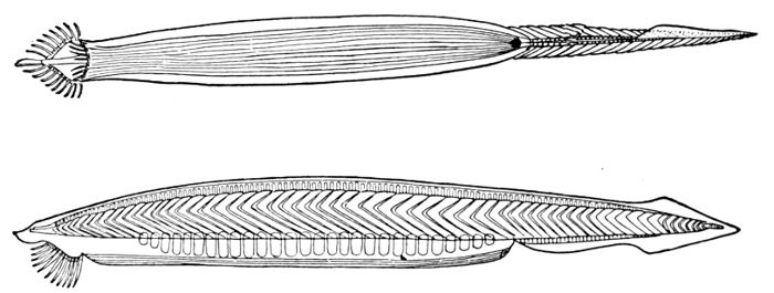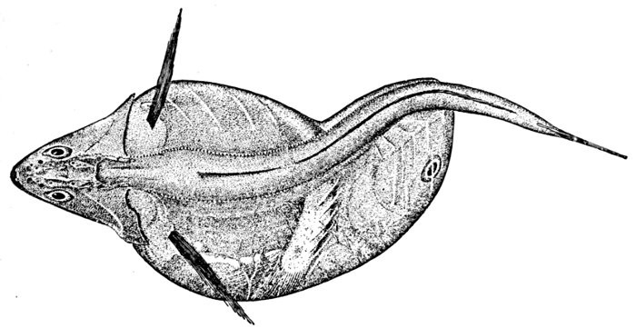 Spines of the Catfishes.—Venomous Spines.—The Lancet of the Surgeon-fish.—Spines of the Sting-ray.—Protection through Poisonous Flesh of Fishes.—Electric Fishes.—Photophores or Luminous Organs.—Photophores in the Iniomous Fishes.—Photophores of Porichthys.—Globefishes.—Remoras.—Sucking-disks of Clingfishes.—Lampreys and Hogfishes.—The Swordfishes.—The Paddle-fishes.—The Sawfishes.—Peculiarities of Jaws and Teeth.—The Angler-fishes.—Relation of Number of Vertebræ to Temperature, and the Struggle for Existence.—Number of Vertebræ: Soft-rayed Fishes; Spiny-rayed Fishes; Fresh-water Fishes; Pelagic Fishes.—Variations in Fin-rays.—Relation of Numbers to Conditions of Life.—Degeneration of Structures.—Conditions of Evolution among Fishes.