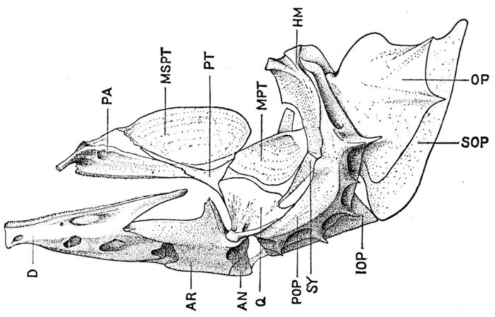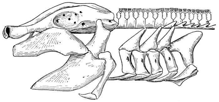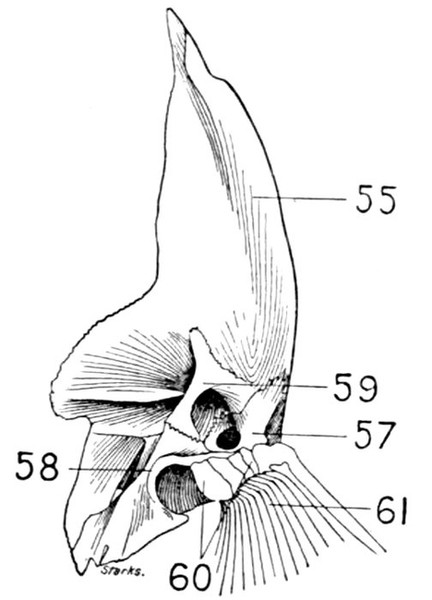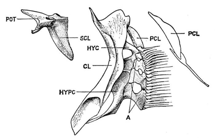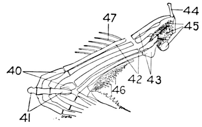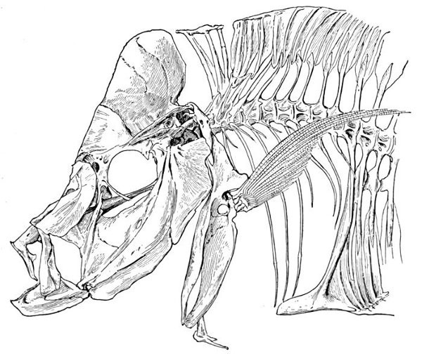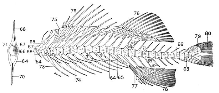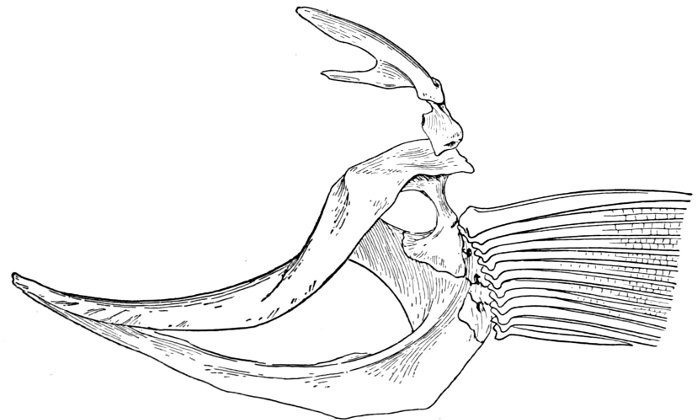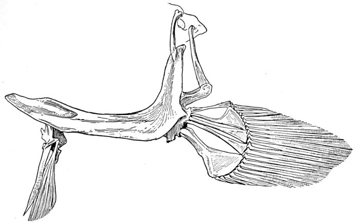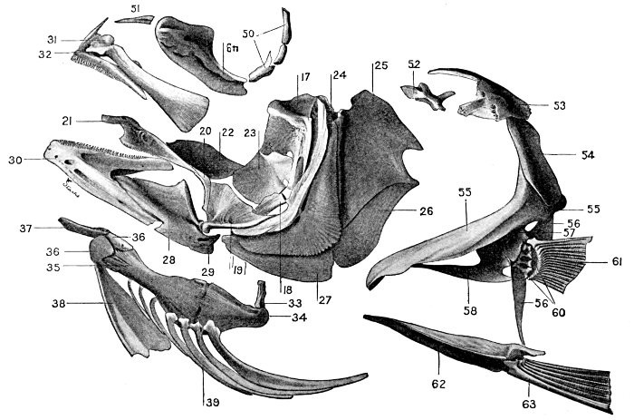 Specialization of the Skeleton.—Homologies of Bones of Fishes.—Parts of the Skeleton.—Names of Bones of Fishes.—Bones of the Cranium.—Bones of the Jaws.—The Suspensorium of the Mandible.—Membrane Bones of Head.—Branchial Bones.—The Gill-arches.—The Pharyngeals.—The Vertebral Column.—The Interneurals and Interhæmals.—The Pectoral Limb.—The Shoulder-girdle.—The Posterior Limb.—Degeneration.—The Skeleton in Primitive Fishes.—The Skeleton of Sharks.—The Archipterygium.