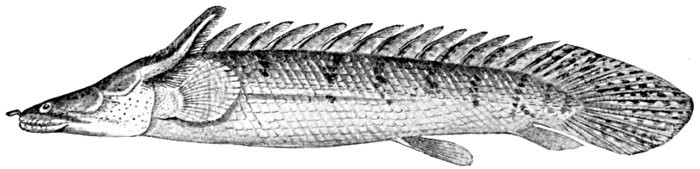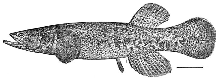 Fig. 116.—Snake-headed China-fish, Ophiocephalus barca. India. (After Day.)