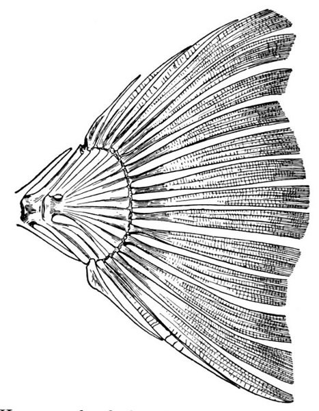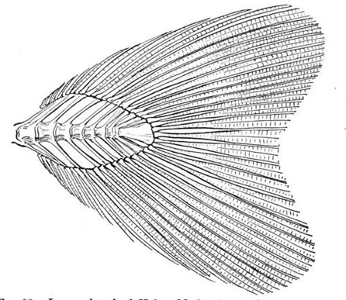 Reproduction of Lost Parts.—Fishes have little power to reproduce lost parts. Only the tips of fleshy structures are thus restored after injury. Sometimes a fish in which the tail has been bitten off will survive the injury. The wound will heal, leaving the animal with a truncate body, fin-rays sometimes arising from the scars.