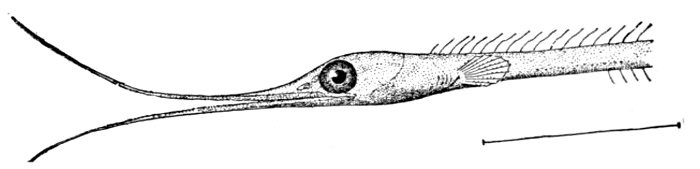 Fig. 101.—Larva of the Sail-fish, Istiophorus, very young. (After Lütken.)