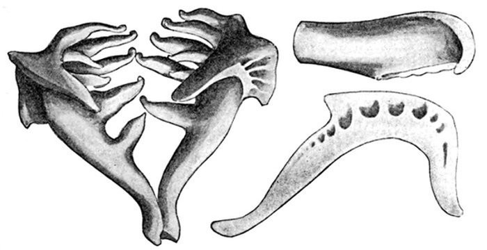 The Sense of Taste.—It is not certain that fishes possess a sense of taste, and it is attributed to them only through their homology with the higher animals. The tongue is without delicate membranes or power of motion. In some fishes certain parts of the palate or pharyngeal region are well supplied with nerves, but no direct evidence exists that these have a function of discrimination among foods. Fishes swallow their food very rapidly, often whole, and mastication, when it takes place, is a crushing or cutting process, not one likely to be affected by the taste of the food.