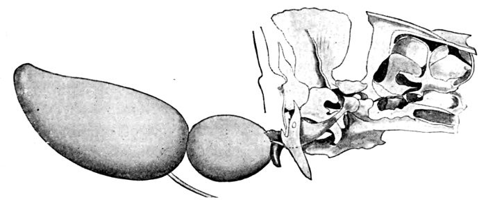 Reflex Action.—These impressions brought to the brain by the sensory nerves represent in some degree the facts in the animal's environment. They teach something as to its food or its safety. The power of locomotion is characteristic of animals. If they move, their actions must depend on the indications carried to the nerve-centre from the outside; if they feed on living organisms, they must seek their food; if, as in many cases, other living organisms prey on them, they must bestir themselves to escape. The impulse of hunger on the one hand and of fear on the other are elemental. The sensorium receives an impression that food exists in a certain direction. At once an impulse to motion is sent out from it to the muscles necessary to move the body in that direction. In the higher animals these movements are more rapid and more exact. This is because organs of sense, muscles, nerve-fibres, and the nerve-cells are all alike highly specialized. In the fish the sensation is slow, the muscular response sluggish, but the method remains the same. This is simple reflex action, an impulse from the environment carried to the brain and then unconsciously reflected back as motion. The impulse of fear is of the same nature. Reflex action is in general unconscious, but with animals, as with man, it shades by degrees into conscious action, and into volition or action "done on purpose."