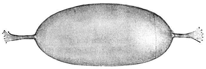 Fig. 95.—Egg of the Hagfish, Myxine limosa Girard, showing threads for attachment. (After Dean.)