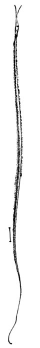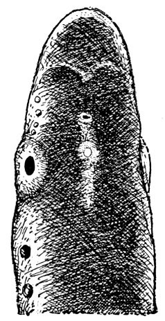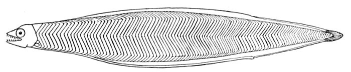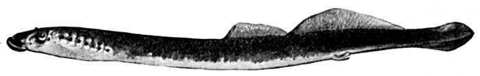 Fig. 102.—Larva of Brook Lamprey, Lampetra wilderi, before transformation, being as large as the adult, toothless, and more distinctly segmented.