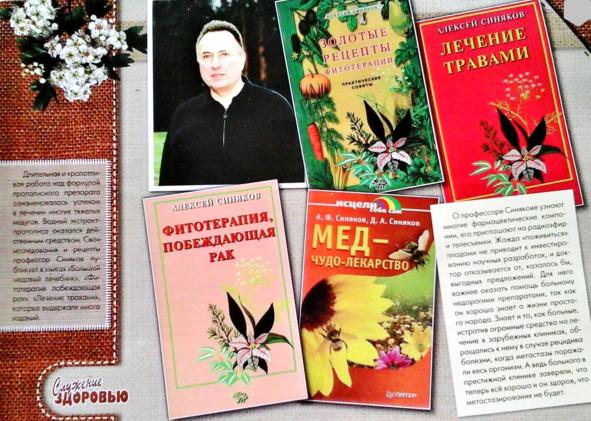 Свои исследования и рецепты я опубликовал в книгах «Большой медовый лечебник», «Фитотерапия, побеждающая рак», «Лечение травами», которые выдержали много изданий.