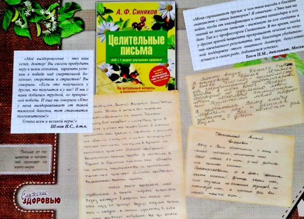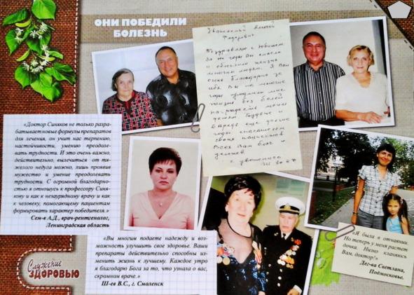 Многие фармацевтические компании приглашали меня на радиоэфир, телесъемки, поступали разные предложения о сотрудничестве. Но я предпочитал непосредственную помощь больным. Меня всегда радуют письма-отзывы, в которых сообщается о положительных результатах в случае применения моих препаратов. Это помогает мне совершенствовать их формулу, скорректировать дозировку, учитывать все особенности в процессе лечения. Важно еще иметь и любовь к жизни, неистребимое желание победить болезнь.