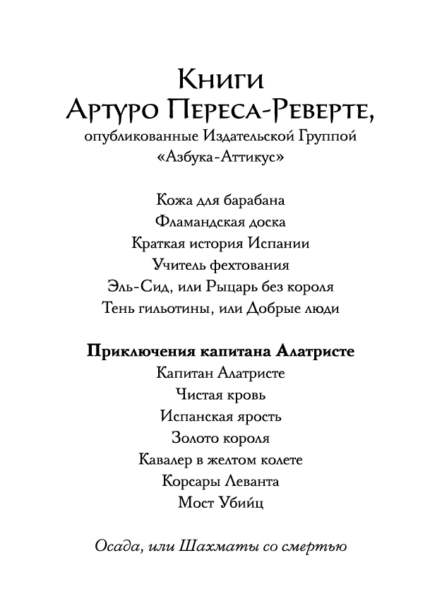 Осада, или Шахматы со смертью : роман / Артуро Перес-Реверте ; пер. с исп. А. Богдановского. — М. : Иностранка, Азбука-Аттикус, 2021. — (Большой роман).