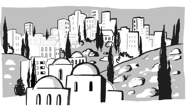 Мне повезло. В моей квартирке нет особых архитектурных выбрыков. Только скошенный потолок в ванной да окна в виде сот, к которым, впрочем, быстро привыкаешь. Окно было первым, что бросилось в глаза, когда мне отперли мою будущую комнату. Прямо под ним был разбит палисадник, сбоку виднелся синий забор корта, а над всем этим парил Иерусалим, сияющий, как рафинад, рассыпанный по холмам. Посреди пустой комнаты в пыльном солнечном квадрате стоял мраморный пюпитр. Почему-то именно этот, неожиданный здесь, предмет вызвал во мне прилив острого счастья. Позже пюпитр забрали, оказалось, он был сломан, и завхоз его склеил, а пустую комнату использовал, чтобы никто не двигал его, пока не высохнет клей.