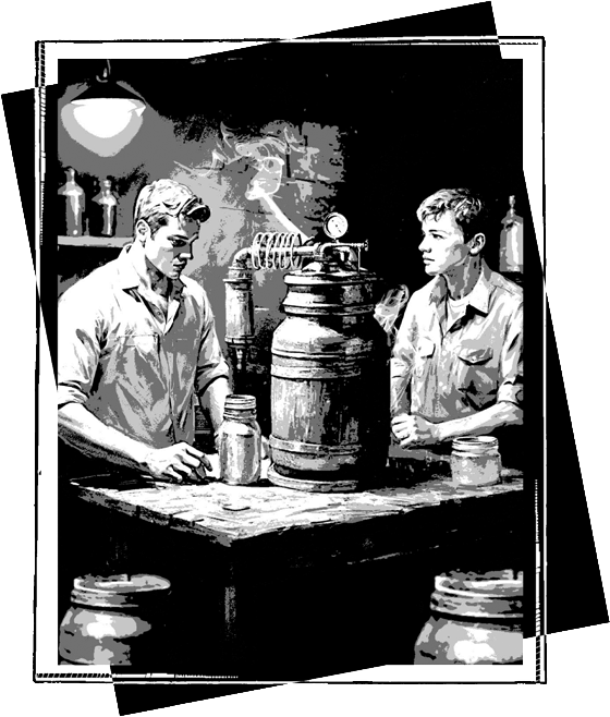 – Так я не знал… Дед уже лет пять как умер, у него там в сарае аппарат стоял, я даже не знал. А на днях глянул, офонарел!.. Дед раньше на механическом заводе работал – там, видно, собрал.