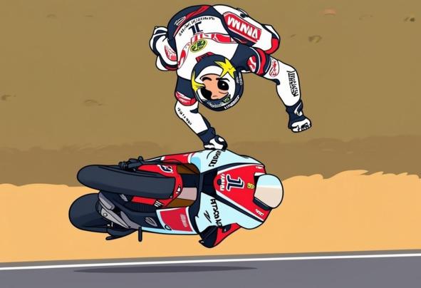 В начале Мрак действительно двигался круг за кругом, соблюдая все правила. Но потом в его голове что-то перещёлкнуло и он стал увеличивать скорость. Плавно, но настойчиво. «Курсант Мрак вы нарушаете инструкции» — услышал он голос ЭльМариачи в наушнике. Но рука сама продолжила поворот ручки акселератора. И вот довольно крутой поворот на 90 градусов, который он спокойно проходил на медленной скорости. Мотоцикл как будто подменили, он стал упругим и непослушным. Мрак пытался повернуть руль в поворот, но тот вырывался и возвращался обратно. По спине прокатилась холодная волна страха. Мрак увидел, как приближается край дороги, и стал тормозить. Он делал это плавно, как рассказывал инструктор, но стало только хуже. Байк совсем распрямился. Мрак с ужасом смотрел на ограждение трассы и понимал, что падение неизбежно!