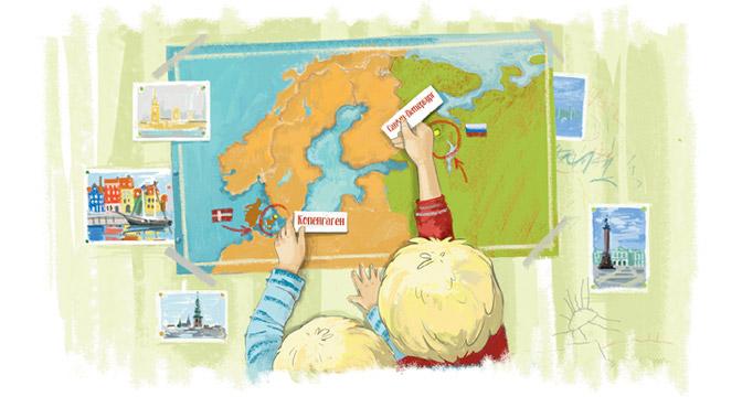 Остров Зеландия о-о-очень большой. Но и он где-то заканчивается. Там, где он заканчивается, начинается пролив. Это такая огромная полоса воды. Как река, только ещё шире. И там, за этим проливом, совсем другая страна — Швеция, где живут совсем-совсем другие люди, шведы. Если стоять с папой на самом берегу этого пролива, который папа называет Эресунн, то видно эту другую страну. Правда, шведов не видно, но папа уверен в том, что они там есть. Они едят шведские макароны со шведским сыром и шведские фрикадельки, и папа обещал поехать туда с Мадсом и Митей на поезде, когда у него будет время. А пока у папы времени нет, они никуда не поехали и продолжают жить в городе Копенгагене, на самом краю этого большого острова Зеландия.