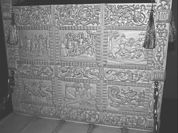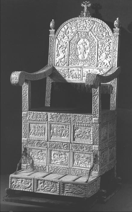 Рис. 1. Костяной престол Ивана Грозного. Покрыт резными пластинами из слоновой кости. Оружейная Палата Московского Кремля. Взято из [4], с. 365