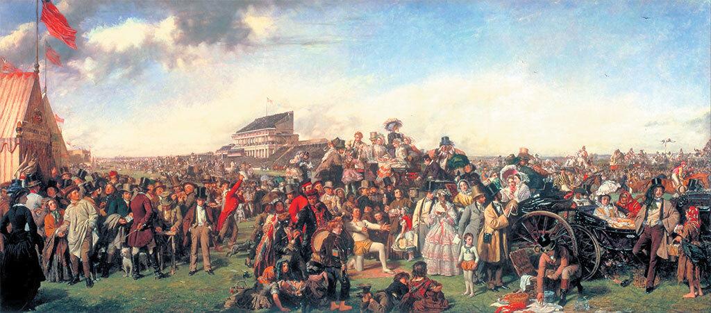 Фрит был большим противником и живописи прерафаэлитов, и импрессионизма, поскольку полагал, что именно на их совести лежит кризис английского искусства. Тем не менее он с самоиронией писал и о самом популярном своем произведении «День дерби»: «Акробаты, шарманщики, цыганки-гадалки, не говоря уж об экипажах, полных хорошенькими женщинами, да еще спортивная тема – все давало обильный материал для того сорта искусства, которому я – ввиду отсутствия высших дарований – посвятил себя». Картину пришлось огородить решеткой и приставить полицейского для охраны от толпы, когда работа была выставлена в лондонской Королевской Академии. Чтобы позлить соперников, Фрит даже поместил в газете объявление о своей готовности заплатить за идею столь же доходного сюжета.