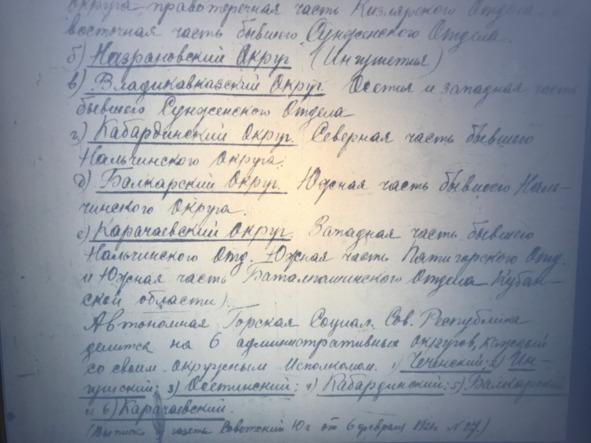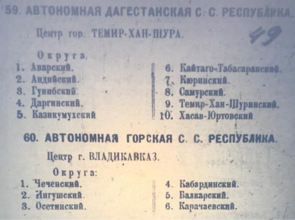 После гражданской войны началось формирование краев и областей, что тоже делалось неумело. В 1921 году была создана Горская республика с центром Владикавказ. Чеченцы и Ингуши вошли в нее Автономными Областями. В частных беседах в Петрограде, в Москве, в Ростове партийное руководство Чеченцам и Ингушам чуть ли не полную автономность в составе РСФСР, соблюдение норм ислама, шариатские суды, ношение оружия в возрасте от 15 лет.