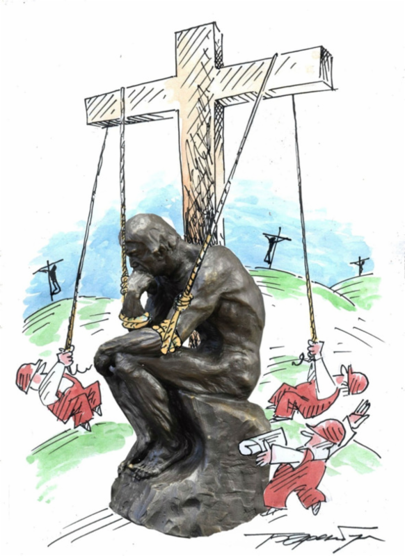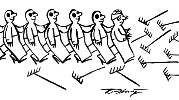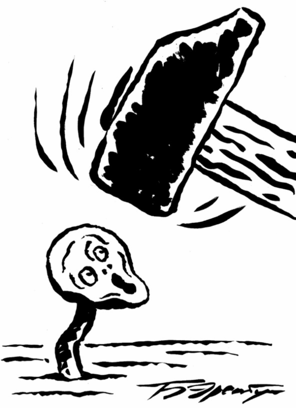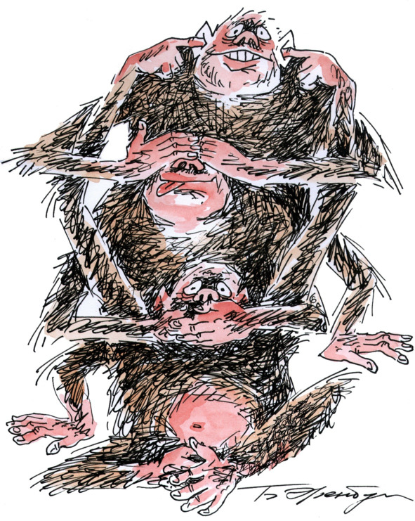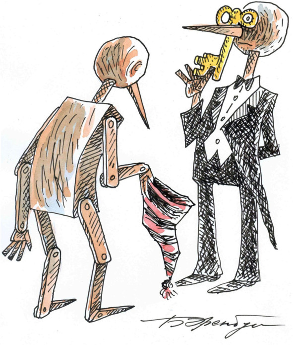 Я рисовал человечков — видимо, солдатиков, но руки у них росли из талии, и отец никак не мог с этим смириться. Так начинался тернистый путь карикатуриста: с искажения действительности, будирующего мнение публики…