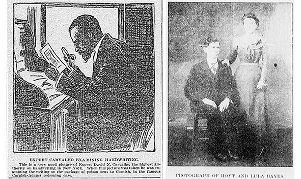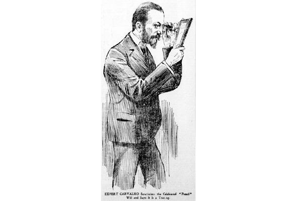Крайне приободрённый полученным результатом, детектив МакВей отправился в Нью-Йорк. Там он встретился с экспертом-почерковедом Дэвидом Карвальо (David N. Carvalho), которому продемонстрировал письменные улики, и предложил ему высказаться насчёт возможности их написания одним человеком. В этом месте нельзя не сказать о том, что Карвальо являлся одним из интереснейших людей своего времени, тем человеком, кто заложил основы весьма важного направления криминалистики, связанного с изучением письменных документов. О нём и его работе можно написать отдельную книгу, и книга эта, если только она когда-либо появится, окажется исключительно интересной. В 1871 году молодой Дэвид открыл в Нью-Йорке фотоателье, а через 5 лет провёл первую экспертизу подлинности подписи на чеке. В те годы фотографические изображения получались не на плёнке, а на стеклянных пластинках, и Карвальо догадался увеличивать отдельные слова и буквы проверяемого текста и сравнивать посредством совмещения (наложения) их с аналогичными словами и буквами предполагаемого автора.