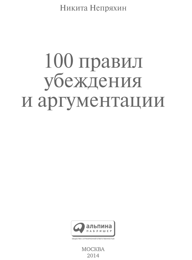 100 правил убеждения и аргументации / Никита Непряхин. — М.: АЛЬПИНА ПАБЛИШЕР, 2014.