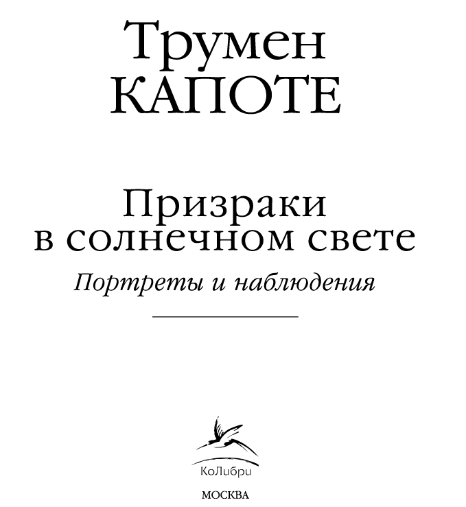 Призраки в солнечном свете. Портреты и наблюдения : повести, статьи / Трумен Капоте ; пер. с англ. О. Алякринского, А. Андриевской, Л. Беспаловой и др. — М. : КоЛибри, Азбука-Аттикус, 2023.