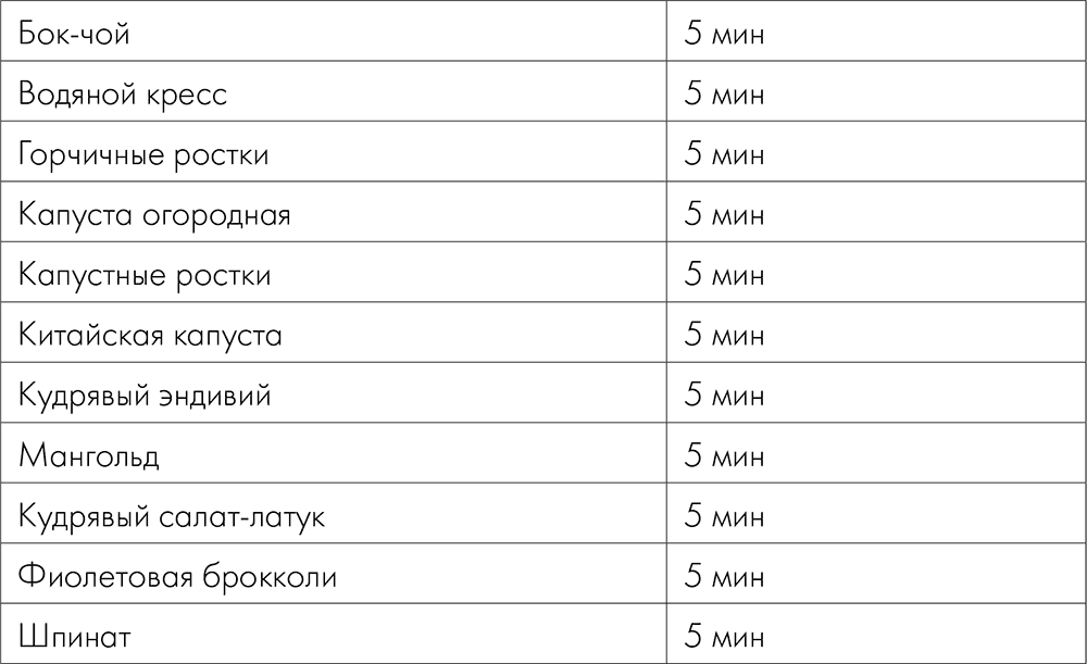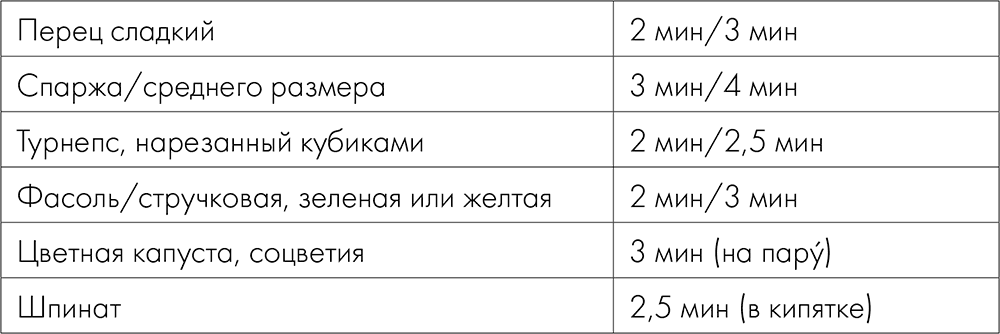 Продолжительность бланширования некоторых овощей в кипятке/на пару
