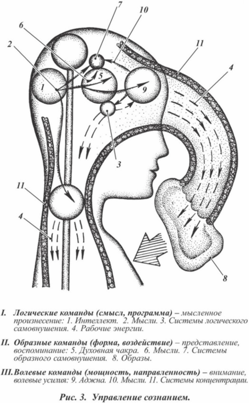 Волевые команды — управление вниманием и вложение волевых усилий в создание требуемых воздействий. Эти команды включают аджну и, через нее, системы концентрации (мощность создаваемых образов и потоков рабочих энергий, их направленность на обьект и удержание в заданном режиме).