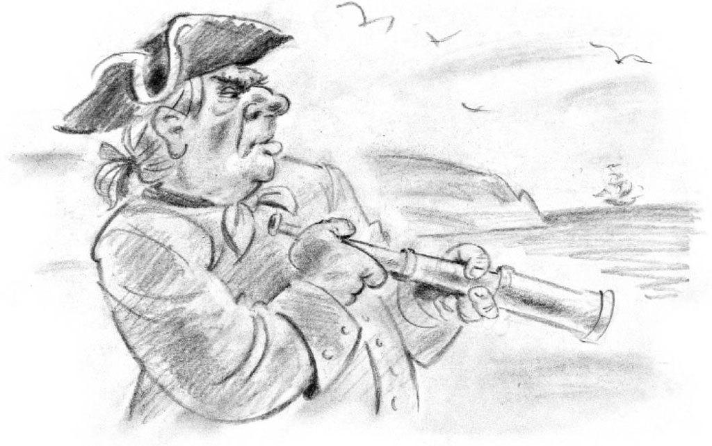 He seemed like a skipper. He was a very silent man. All day he hung round the cove or upon the cliffs with a brass telescope; all evening he sat in a corner and drank rum and water. Mostly he did not speak. Every day when he came back from his walk, he asked if any seamen went by along the road. He took me aside one day and promised me a silver fourpenny [2] every month if I only ‘keep my eye open [3] for a seaman with one leg’ and let him know the moment he appeared.