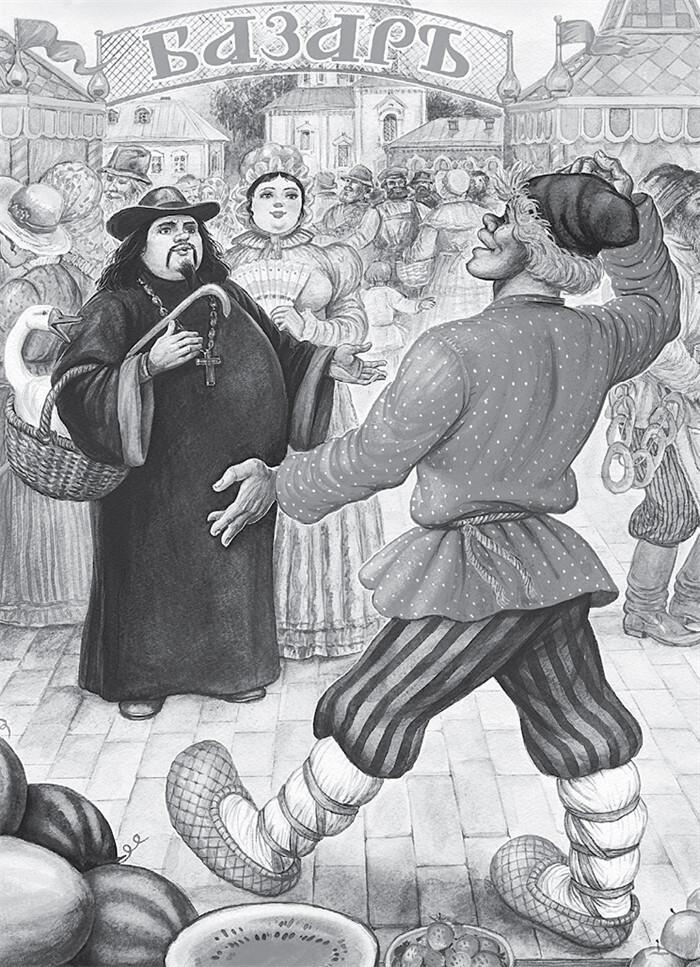 А поп, завидя Балду, вскакивает,