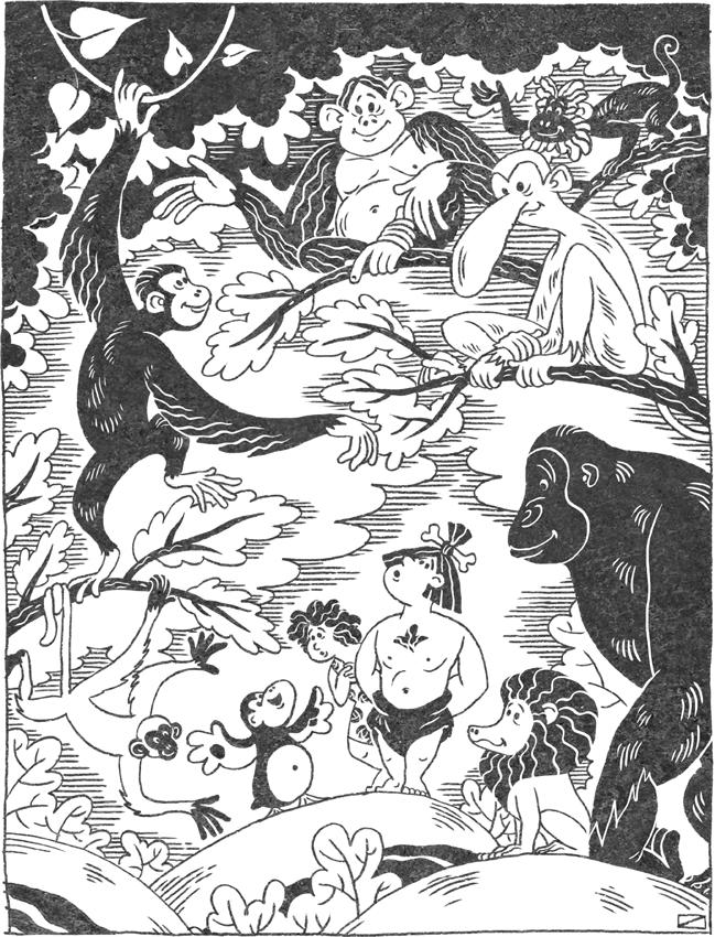 Короче говоря, человек отличается от прочих обезьян не отсутствием волос, а характером их роста на поверхности тела. Точнее, тем, как этот характер меняется с течением времени. У новорожденного детеныша шимпанзе или гориллы шапка густых волос на голове и очень редкая, короткая шерсть на теле. Ни дать ни взять человечек! Но затем шерсть быстро покрывает кожу растущей обезьянки, а у человека волосы на некоторых частях тела вырастают лишь годы спустя. Недаром голландский анатом Луис Больк утверждал, будто человек — всего лишь недоразвитый детеныш обезьяны. Подробное знакомство с идеями Болька ждет нас впереди.