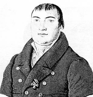 Джон Фильд, композитор и пианист, учитель музыки Грибоедова и его сестры. Гравюра А. Янова, 1800-е гг.