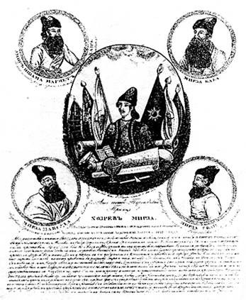 Мессих-мирза отправил ахунов[19] к Шахзаде-Зилли-султану. Они сказали ему: «Не мы писали мирный договор с Россией и не потерпим, чтобы русские разрушали нашу веру; доложите шаху, чтобы нам непременно возвратили пленных». Зилли-султан просил их повременить, обещал обо всем донести шаху. Ахуны пошли домой и дорогой говорили народу: «Запирайте завтра базар и собирайтесь в мечетях: там услышите наше слово!» Вот как далее повествует о событиях следующего дня единственный оставшийся в живых – секретарь посольства Мальцев: