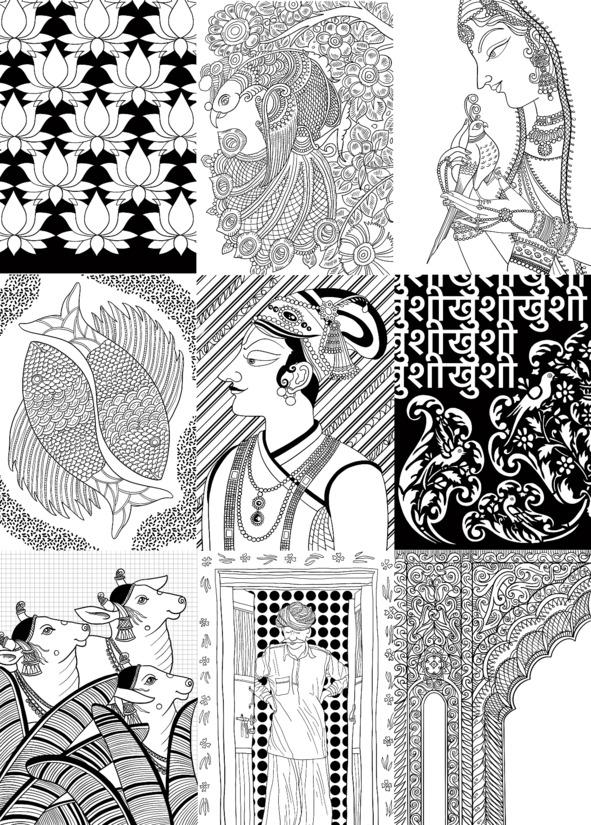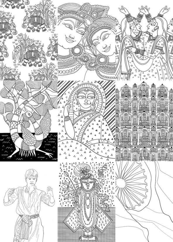 Раскраска «Линии Индии: 80 раскрасок и идей для рисования» — это захватывающее путешествие по многовековой культуре Индии. Вы окажетесь под сводами величественного Тадж-Махала, промчитесь на моторикше и погрузитесь в завораживающую красоту мандалы. С помощью этой раскраски вы сможете ближе познакомиться с искусством Мадхубани, живописью Варли и техникой племени Гонда. Расширьте свой культурный кругозор, найдите красивые цветовые решения для лирических мотивов и творите с радостью!
