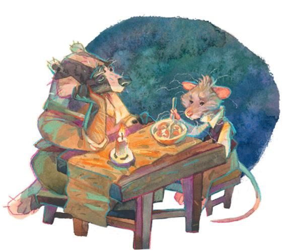 — Мистер Фарри, — мягко обратился к Мышу Барсук, — опыт подсказывает мне, что путешественники, которые не пробуют моё улиточное рагу в течение пяти секунд после того, как я его принёс, попали… если не в беду, то в очень сложную ситуацию. Вы сидите над ним уже почти час — ваши дела плохи. Так выглядят Звери, которые либо бесконечно бегут от чего-то, либо находятся в вечных и нередко безнадёжных поисках. Вы не похожи ни на кладоискателя, ни на бродягу, ищущего тёплого места под солнцем. Думаю, вы принадлежите к тому типу Зверей, которые бо́льшую часть жизни с удовольствием проводят у своего очага. Я бы поставил на то, что это вынужденное путешествие. Так какова же его цель, мистер Фарри Разерфорд? Расскажите мне, я умею хранить секреты. И, кто знает, может, сумею чем-то помочь.