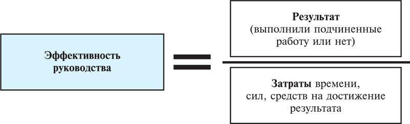 В соответствии с базовым принципом эффективности мы можем определить эффективность руководства как соотношение результата (выполнили подчиненные работу нужным образом и в срок или же нет) и затрат времени, сил, средств со стороны руководителя на то, чтобы результат был достигнут.