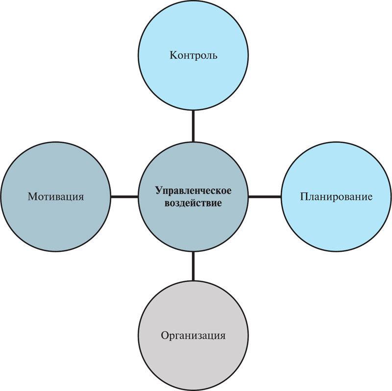 Управленческое воздействие, обеспечивающее изменение в желаемом направлении тех или иных характеристик организации, включает четыре основных звена: планирование, организацию, мотивацию, контроль (рис. 2.2).