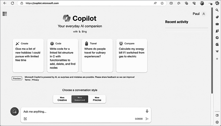 Рис. 1.3. Если у вас есть учетная запись Microsoft, можно использовать Copilot для работы с GPT-4