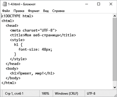 Рис. 1.6. Код, скопированный из ChatGPT и сохраненный в HTML-файл