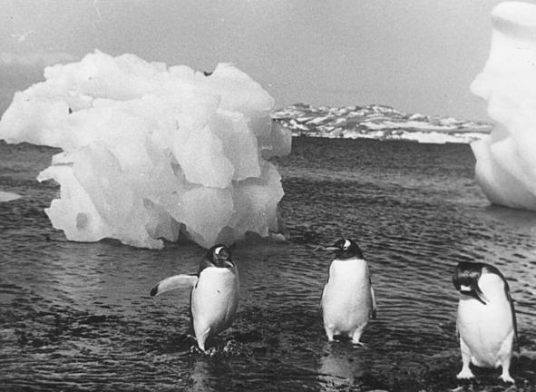 Когда идешь по берегу или по припаю вдали от станции в тихую и ясную погоду, иногда слышишь крик, похожий на зов человеческий. Останавливаешься в недоумении и оглядываешься по сторонам: кто кричит? Кто зовет? Позднее мы поняли — это зов пингвина: или вожак собирает стаю или отставший от стаи просит дать ему информацию, куда направить свои стопы.
