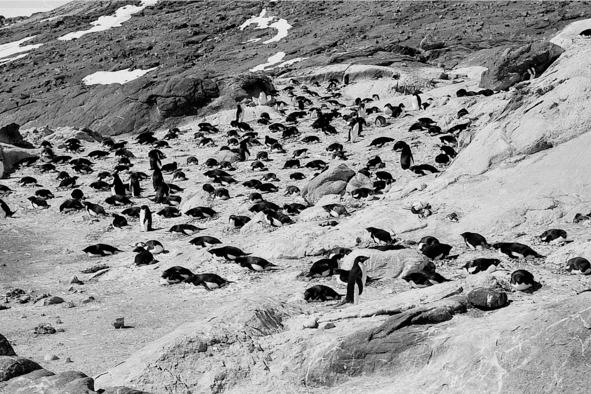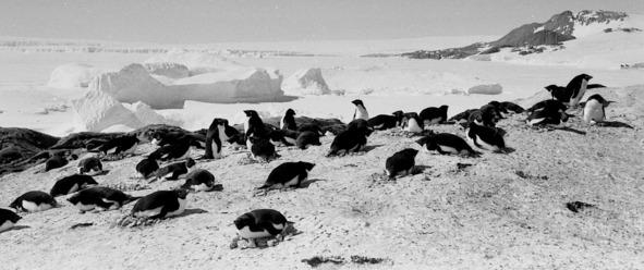 Пингвины выбирают места для гнездовий только на доступных с моря, свободных от снега и льда участках суши. И поэтому когда на побережье создается новая научная станция, то она всегда лишает пингвинов территории, которое, вероятно, в течение столетий использовалось ими для гнездования. При выборе территории на пригодность ее использования для поселения происходит совпадение точек зрения пингвинов и человека. Пингвины часто посещают территорию станции, но влечет их к этой территории не любопытство, а просто инстинкт, который ежегодно приводит скворца в «свой» скворечник. Я думаю, что на этой территории они или их предки когда–то родились.